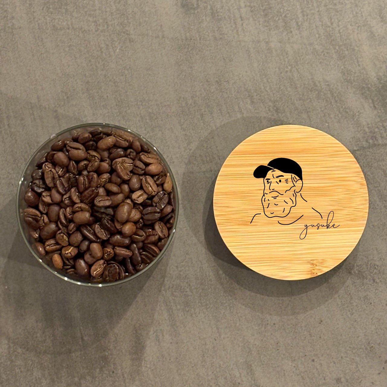 コーヒーをネットで売るといっても、コーヒー市場は飽和状態です。コーヒーの原価も上がっているし、近くには安くておいしいコンビニコーヒーだってあるし。じゃあどうやって付加価値をつける?どうしたら私のコーヒーを買ってくれる?考え付いた先は、「その人だけの特別なコーヒー」を作ることでした。お客様から写真をもらって、似顔絵とメッセージをキャニスターに刻印する、そういった個人向けサービスなら大手も参入できない、イラストとコーヒーが得意な私にしかできないなと思えました。